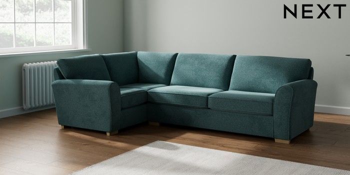 7.2.10 Michigan II Large Corner Sofa - Left Hand Chunky Chenille Mid Teal Green Slim Block - Light | Made Click here to use our website with more accessibility support, for example screen readers