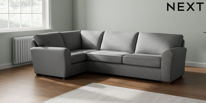 7.2.10 Michigan II Large Corner Sofa - Left Hand Chunky Weave Mid Grey Slim Block - Mid | Made Click here to use our website with more accessibility support, for example screen readers