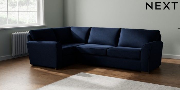 7.2.10 Michigan II Large Corner Sofa - Left Hand Luxe Chenille Navy Blue Slim Block - Mid | Made Click here to use our website with more accessibility support, for example screen readers