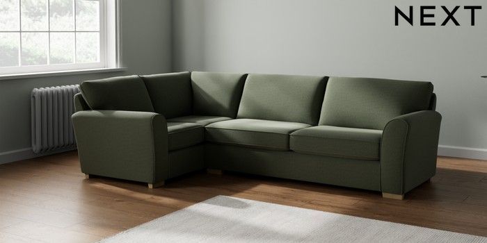 7.2.10 Michigan II Large Corner Sofa - Left Hand Relaxed Linen Look Dark Green Slim Block - Light | Made Click here to use our website with more accessibility support, for example screen readers