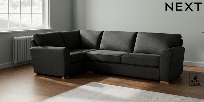 7.2.10 Michigan II Large Corner Sofa - Left Hand Tweedy Blend Easy Clean Charcoal Grey Slim Block - Light | Made Click here to use our website with more accessibility support, for example screen readers