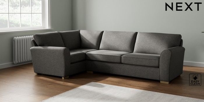 7.2.10 Michigan II Large Corner Sofa - Left Hand Tweedy Blend Easy Clean Dark Grey Slim Block - Light | Made Click here to use our website with more accessibility support, for example screen readers