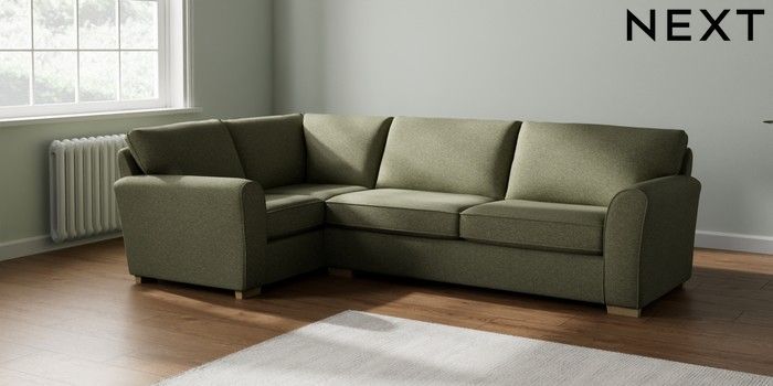 7.2.10 Michigan II Large Corner Sofa - Left Hand Tweedy Chenille Mid Moss Green Slim Block - Light | Made Click here to use our website with more accessibility support, for example screen readers