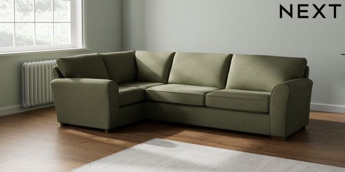 7.2.10 Michigan II Large Corner Sofa - Left Hand Tweedy Chenille Mid Moss Green Slim Block - Mid | Made Click here to use our website with more accessibility support, for example screen readers