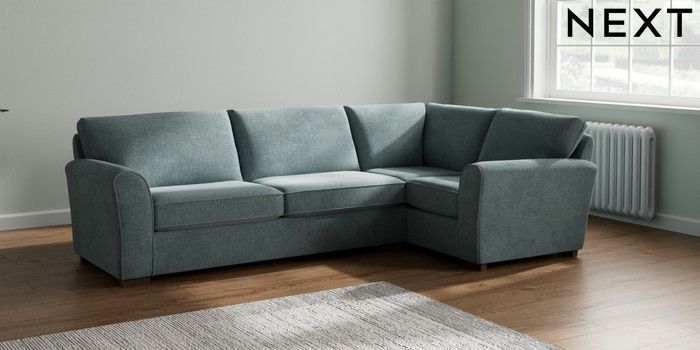 7.2.10 Michigan II Large Corner Sofa - Right Hand Chunky Chenille Light Teal Green Slim Block - Mid | Made Click here to use our website with more accessibility support, for example screen readers