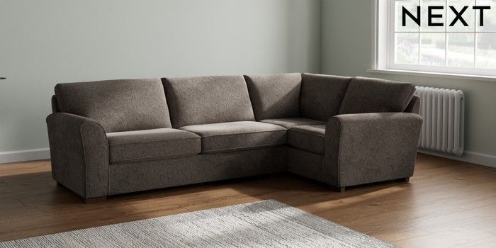 7.2.10 Michigan II Large Corner Sofa - Right Hand Chunky Chenille Mink Brown Slim Block - Mid | Made Click here to use our website with more accessibility support, for example screen readers