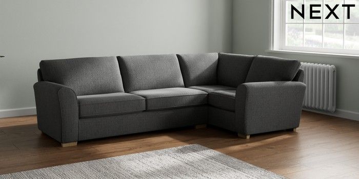 7.2.10 Michigan II Large Corner Sofa - Right Hand Chunky Texture Dark Grey Slim Block - Light | Made Click here to use our website with more accessibility support, for example screen readers