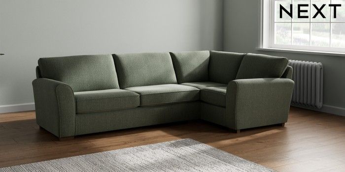 7.2.10 Michigan II Large Corner Sofa - Right Hand Chunky Texture Mid Forest Green Slim Block - Mid | Made Click here to use our website with more accessibility support, for example screen readers