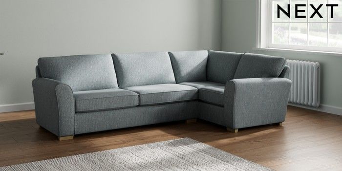 7.2.10 Michigan II Large Corner Sofa - Right Hand Chunky Weave Mid Blue Slim Block - Light | Made Click here to use our website with more accessibility support, for example screen readers