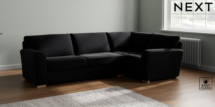 7.2.10 Michigan II Large Corner Sofa - Right Hand Fine Chenille Easy Clean Black Slim Block - Light | Made Click here to use our website with more accessibility support, for example screen readers