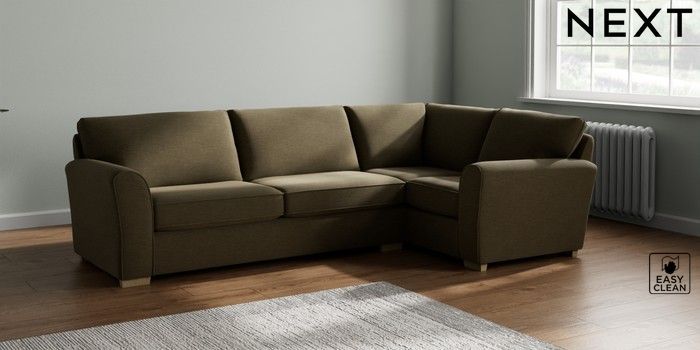 7.2.10 Michigan II Large Corner Sofa - Right Hand Fine Chenille Easy Clean Dark Moss Green Slim Block - Light | Made Click here to use our website with more accessibility support, for example screen readers