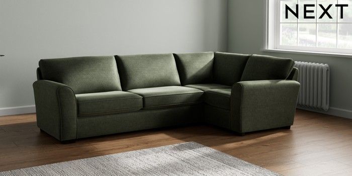 7.2.10 Michigan II Large Corner Sofa - Right Hand Luxe Chenille Mid Green Slim Block - Dark | Made Click here to use our website with more accessibility support, for example screen readers