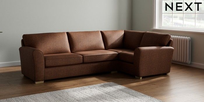 7.2.10 Michigan II Large Corner Sofa - Right Hand Monza Faux Leather Easy Clean Chestnut Brown Slim Block - Light | Made Click here to use our website with more accessibility support, for example screen readers