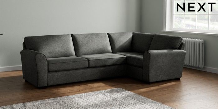 7.2.10 Michigan II Large Corner Sofa - Right Hand Plush Chenille Dark Grey Slim Block - Dark | Made Click here to use our website with more accessibility support, for example screen readers