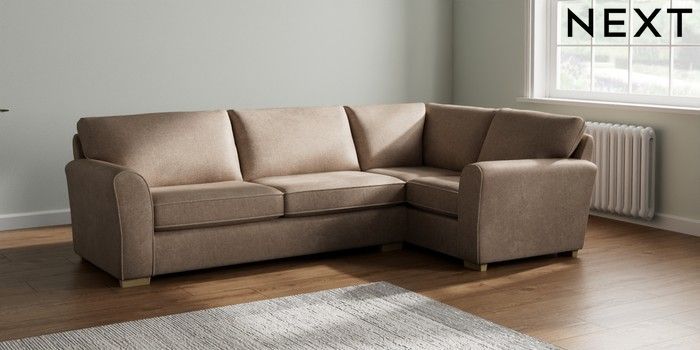 7.2.10 Michigan II Large Corner Sofa - Right Hand Plush Chenille Mid Natural Slim Block - Light | Made Click here to use our website with more accessibility support, for example screen readers