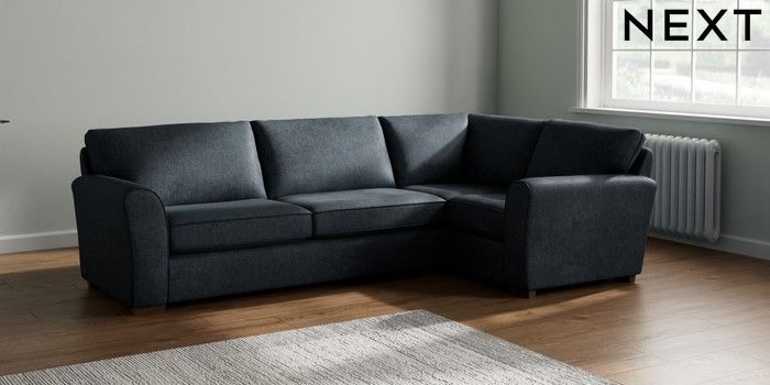 7.2.10 Michigan II Large Corner Sofa - Right Hand Plush Chenille Slate Blue Slim Block - Mid | Made Click here to use our website with more accessibility support, for example screen readers