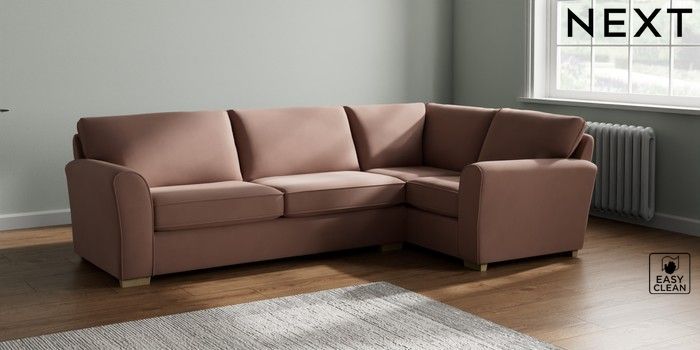 7.2.10 Michigan II Large Corner Sofa - Right Hand Plush Velvet Easy Clean Mid Natural Slim Block - Light | Made Click here to use our website with more accessibility support, for example screen readers