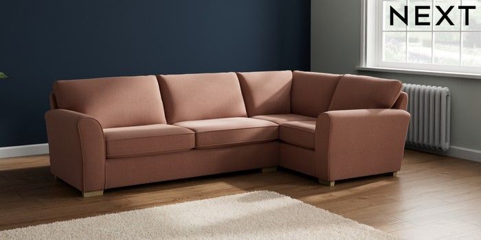 7.2.10 Michigan II Large Corner Sofa - Right Hand Relaxed Linen Look Light Rust Brown Slim Block - Light | Made Click here to use our website with more accessibility support, for example screen readers