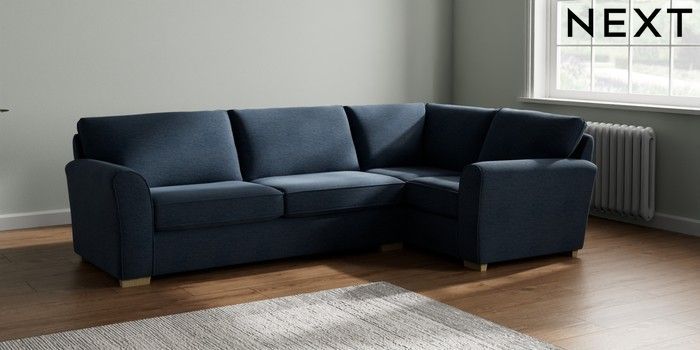 7.2.10 Michigan II Large Corner Sofa - Right Hand Ripple Chenille Dark Blue Slim Block - Light | Made Click here to use our website with more accessibility support, for example screen readers