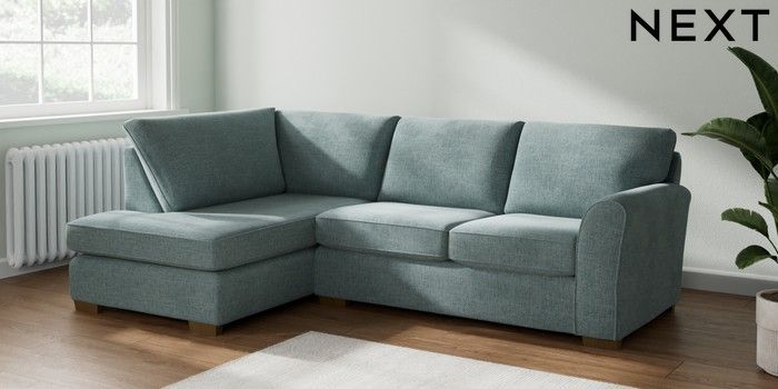 7.2.10 Michigan II Medium Corner Chaise - Left Hand Chunky Chenille Light Teal Green Slim Block - Mid | Made Click here to use our website with more accessibility support, for example screen readers