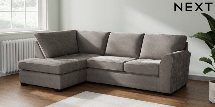 7.2.10 Michigan II Medium Corner Chaise - Left Hand Distressed Velour French Grey Slim Block - Dark | Made Click here to use our website with more accessibility support, for example screen readers