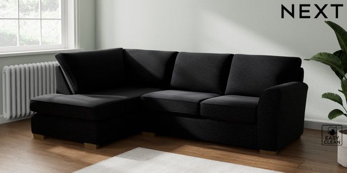 7.2.10 Michigan II Medium Corner Chaise - Left Hand Fine Chenille Easy Clean Black Slim Block - Mid | Made Click here to use our website with more accessibility support, for example screen readers