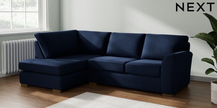 7.2.10 Michigan II Medium Corner Chaise - Left Hand Luxe Chenille Navy Blue Slim Block - Mid | Made Click here to use our website with more accessibility support, for example screen readers