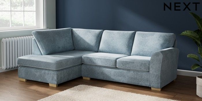 7.2.10 Michigan II Medium Corner Chaise - Left Hand Plush Chenille Light Blue Slim Block - Light | Made Click here to use our website with more accessibility support, for example screen readers