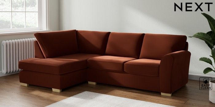 7.2.10 Michigan II Medium Corner Chaise - Left Hand Plush Velvet Easy Clean Ginger Orange Slim Block - Light | Made Click here to use our website with more accessibility support, for example screen readers