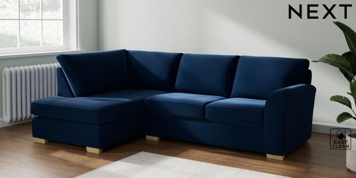 7.2.10 Michigan II Medium Corner Chaise - Left Hand Plush Velvet Easy Clean Navy Blue Slim Block - Light | Made Click here to use our website with more accessibility support, for example screen readers