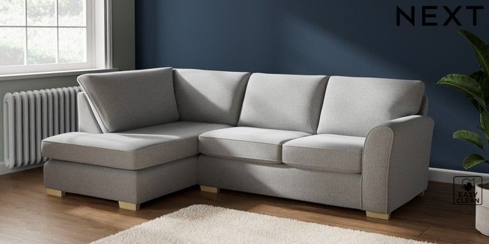 7.2.10 Michigan II Medium Corner Chaise - Left Hand Tweedy Blend Easy Clean Light Silver Grey Slim Block - Light | Made Click here to use our website with more accessibility support, for example screen readers