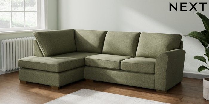 7.2.10 Michigan II Medium Corner Chaise - Left Hand Tweedy Chenille Mid Moss Green Slim Block - Mid | Made Click here to use our website with more accessibility support, for example screen readers