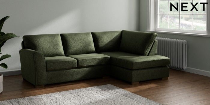 7.2.10 Michigan II Medium Corner Chaise - Right Hand Boucle Chenille Dark Moss Green Slim Block - Mid | Made Click here to use our website with more accessibility support, for example screen readers