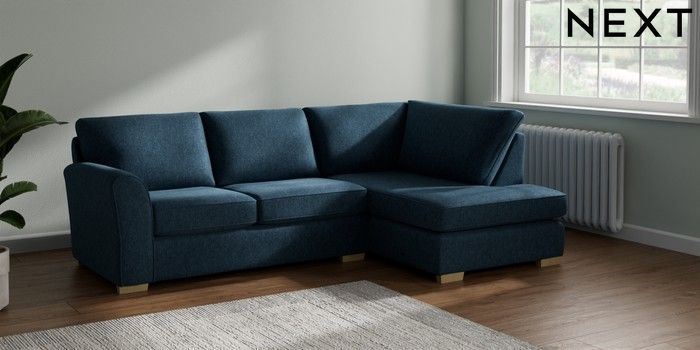 7.2.10 Michigan II Medium Corner Chaise - Right Hand Cotswold Chenille Dark Blue Slim Block - Light | Made Click here to use our website with more accessibility support, for example screen readers