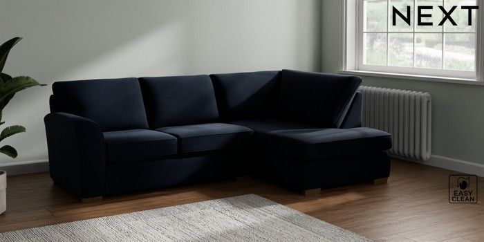 7.2.10 Michigan II Medium Corner Chaise - Right Hand Fine Chenille Easy Clean Dark Navy Blue Slim Block - Mid | Made Click here to use our website with more accessibility support, for example screen readers