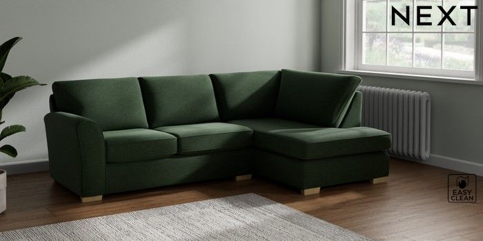 7.2.10 Michigan II Medium Corner Chaise - Right Hand Fine Chenille Easy Clean Mid Khaki Green Slim Block - Light | Made Click here to use our website with more accessibility support, for example screen readers