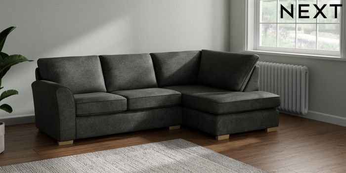 7.2.10 Michigan II Medium Corner Chaise - Right Hand Plush Chenille Dark Grey Slim Block - Light | Made Click here to use our website with more accessibility support, for example screen readers