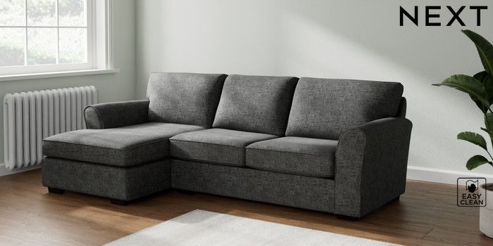 7.2.10 Michigan II Medium Sofa Chaise - Left Hand Boucle Weave Easy Clean Charcoal Grey Slim Block - Dark | Made Click here to use our website with more accessibility support, for example screen readers