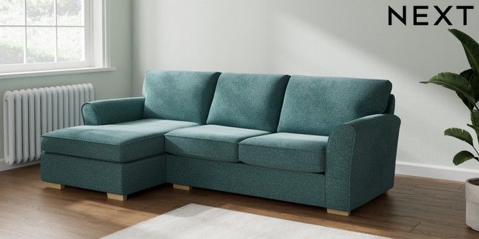 7.2.10 Michigan II Medium Sofa Chaise - Left Hand Chunky Chenille Mid Teal Green Slim Block - Light | Made Click here to use our website with more accessibility support, for example screen readers