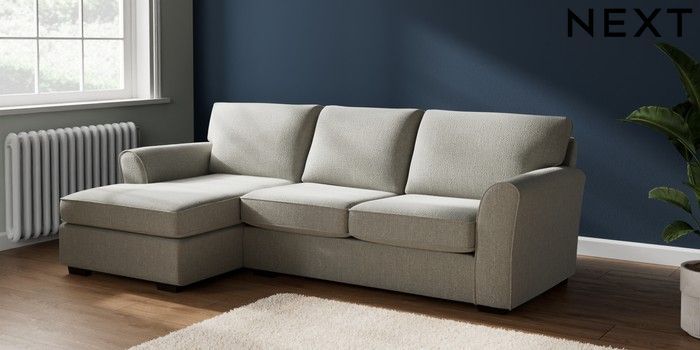 7.2.10 Michigan II Medium Sofa Chaise - Left Hand Chunky Texture Dove Slim Block - Dark | Made Click here to use our website with more accessibility support, for example screen readers