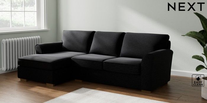 7.2.10 Michigan II Medium Sofa Chaise - Left Hand Fine Chenille Easy Clean Black Slim Block - Mid | Made Click here to use our website with more accessibility support, for example screen readers