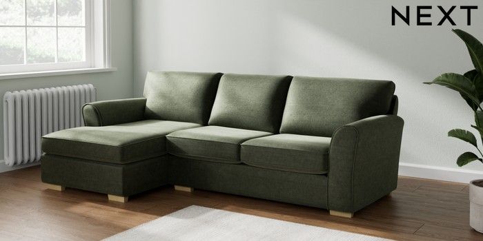 7.2.10 Michigan II Medium Sofa Chaise - Left Hand Luxe Chenille Mid Green Slim Block - Light | Made Click here to use our website with more accessibility support, for example screen readers
