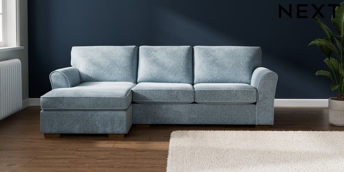 7.2.10 Michigan II Medium Sofa Chaise - Left Hand Plush Chenille Light Blue Slim Block - Mid | Made Click here to use our website with more accessibility support, for example screen readers