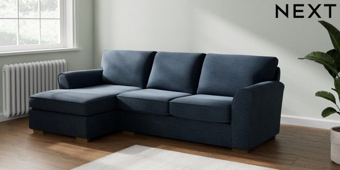 7.2.10 Michigan II Medium Sofa Chaise - Left Hand Ripple Chenille Dark Blue Slim Block - Mid | Made Click here to use our website with more accessibility support, for example screen readers