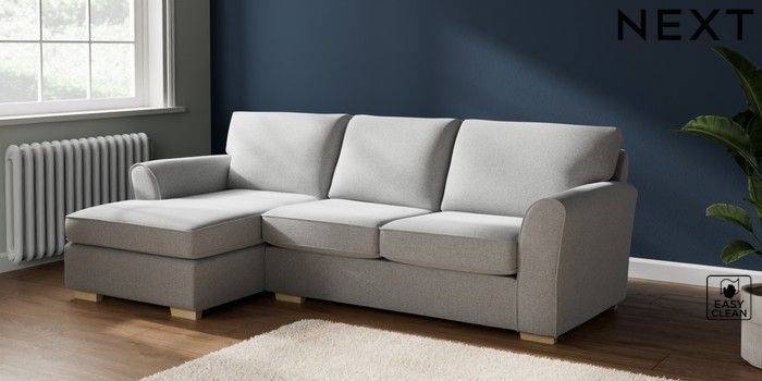 7.2.10 Michigan II Medium Sofa Chaise - Left Hand Tweedy Blend Easy Clean Light Silver Grey Slim Block - Light | Made Click here to use our website with more accessibility support, for example screen readers