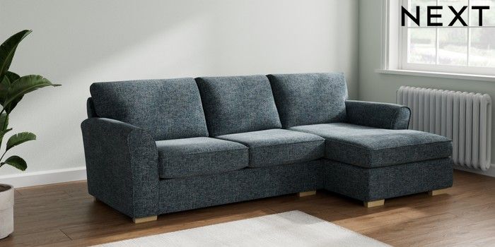 7.2.10 Michigan II Medium Sofa Chaise - Right Hand Chunky Chenille Dark Navy Blue Slim Block - Light | Made Click here to use our website with more accessibility support, for example screen readers