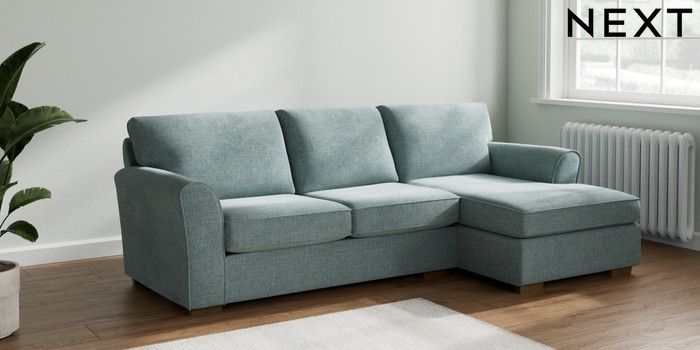 7.2.10 Michigan II Medium Sofa Chaise - Right Hand Chunky Chenille Light Teal Green Slim Block - Mid | Made Click here to use our website with more accessibility support, for example screen readers