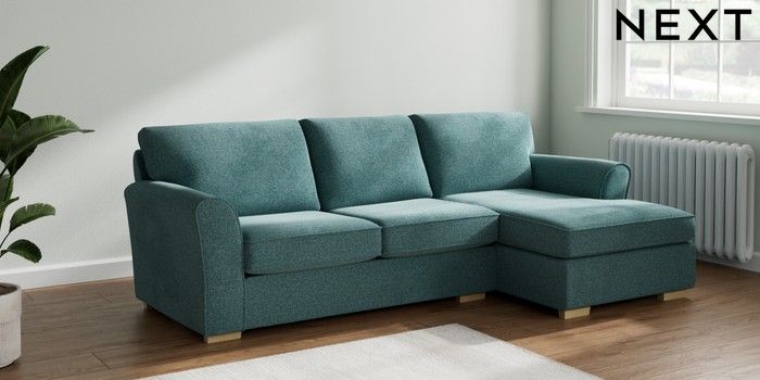 7.2.10 Michigan II Medium Sofa Chaise - Right Hand Chunky Chenille Mid Teal Green Slim Block - Light | Made Click here to use our website with more accessibility support, for example screen readers