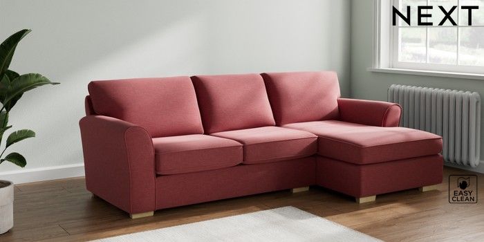 7.2.10 Michigan II Medium Sofa Chaise - Right Hand Fine Chenille Easy Clean Mid Pink Slim Block - Light | Made Click here to use our website with more accessibility support, for example screen readers