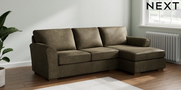 7.2.10 Michigan II Medium Sofa Chaise - Right Hand Plush Chenille Moss Green Slim Block - Mid | Made Click here to use our website with more accessibility support, for example screen readers